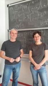 Sandro Mattarei is staying for one month at the University of Milano Bicocca, invited as visiting professor. He is continuing a long collaboration with Dr Marina Avitabile on a new joint project. As you may guess from the notes on the blackboard behind them, binomial coefficients seem to always crop up in Sandro’s research one way or another (although the present topic is actually motivated by the theory of modular Lie algebras).