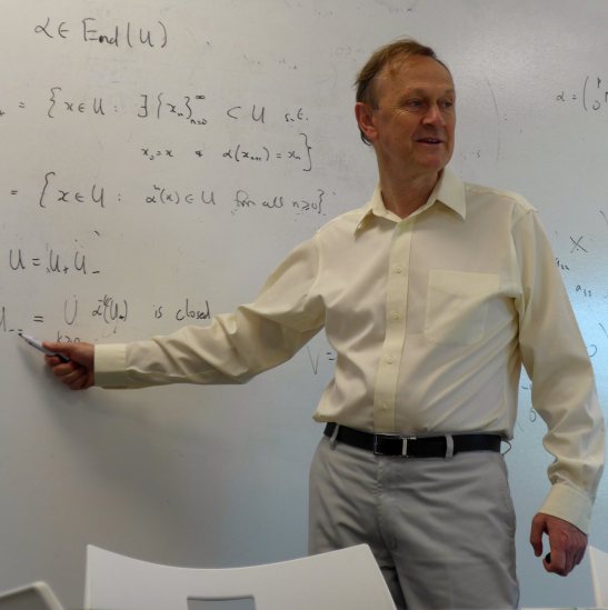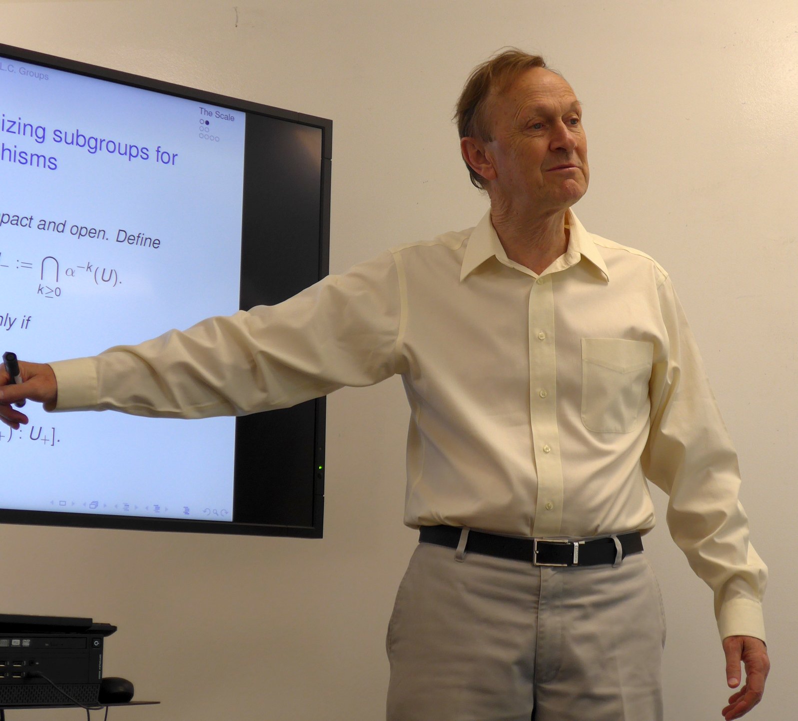 On Thursday the 19th of April 2018 George Willis (Newcastle, Australia) gave a talk on “Totally disconnected, locally compact groups” at the Lincoln Algebra seminar (see abstract here). Introducing the speaker, Simon Smith said that George Willis’ work revolutionized this important area of algebraic research. Recently a conference on this subject was held in Lincoln, where Simon Smith was one of the speakers, and George Willis’ work was heavily cited. Quite a few questions in this area remain open, many of which are included in the new 19th edition of the “Kourovka Notebook”.