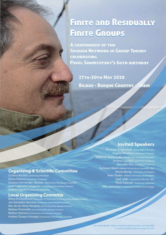 International conference “Finite and Residually Finite Groups” celebrating Pavel Shumyatsky’s 60th birthday will take place in Bilbao (Spain), from 27th to 30th of May, 2020. Prof. Shumyatsky is a member of the Advisory Board of the Lincoln School of Mathematics and Physics and maintains close research links with Lincoln.