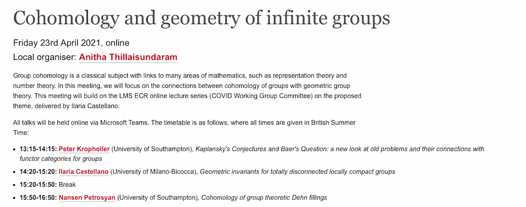 One comment on “Virtual conference on “Cohomology and Geometry of Infinite Groups” at Lincoln