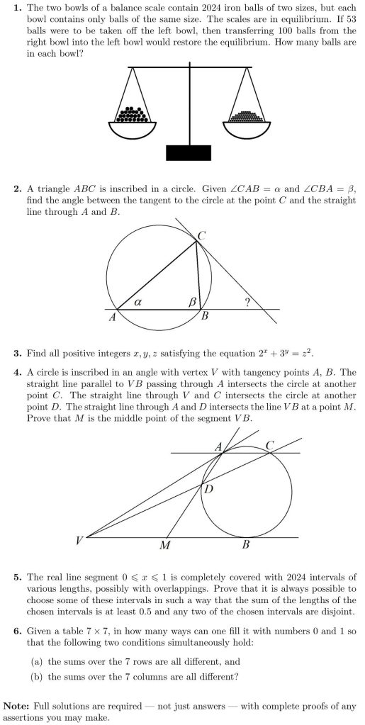 For a chance to win the first prize (£100 Amazon voucher) submit your typed or neatly written (and scanned in a single pdf file) solutions of the following problems to maths@lincoln.ac.uk with “Maths Challenge” in subject line. Please include your full name, postal address and email, as well as the name and address of your school. The closing date is 5 January, 2024. It is possible to win a prize even if you have not completed all of the questions, so you are encouraged to submit solutions if you do only some of the problems. The prize-giving ceremony will be organized in February 2024. The competition is open to all young pre-university people in UK aged 15–18 years. It is not open to current university students. See full Terms and Conditions. The problems can also be downloaded from here.