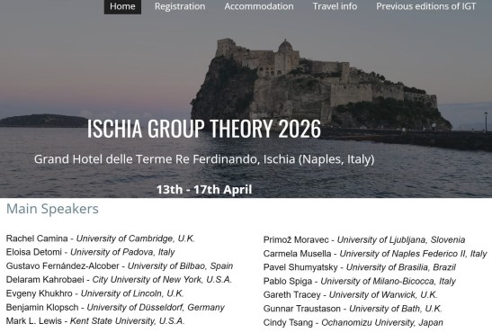 The international conference “Ischia Group Theory 2026” will take place on 13–17 April 2026 in Ischia (Italy). This biennial conference is one of the major events in the academic calendar attracting experts in group theory from all over the world. Evgeny Khukhro will be one of the main speakers at this conference.